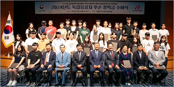 국가보훈부로부터 매년 독립유공자 후손 장학생을 추천 받아 장학금을 수여하고 있습니다. 이를 통해 독립유공자의 숭고한 뜻과 정신을 기리고, 후손들의 교육 기회를 실질적으로 지원하고 있습니다.